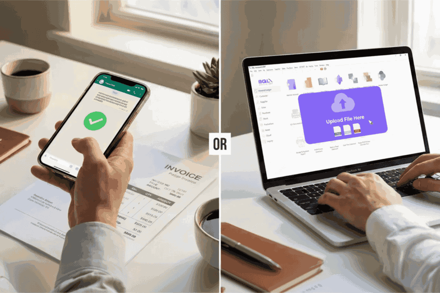 Capture a photo and send it to your registered WhatsApp number. When the green tick appears, your document has been securely delivered to SQL Account.